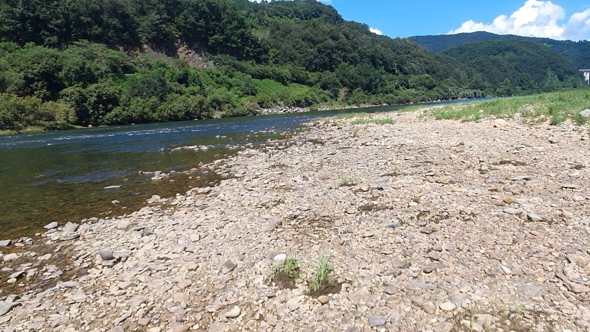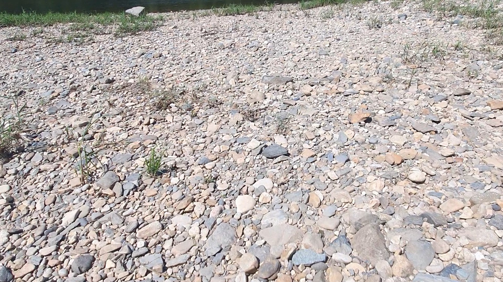 저 아래 돌밭까지 내려가니 풀숲이라