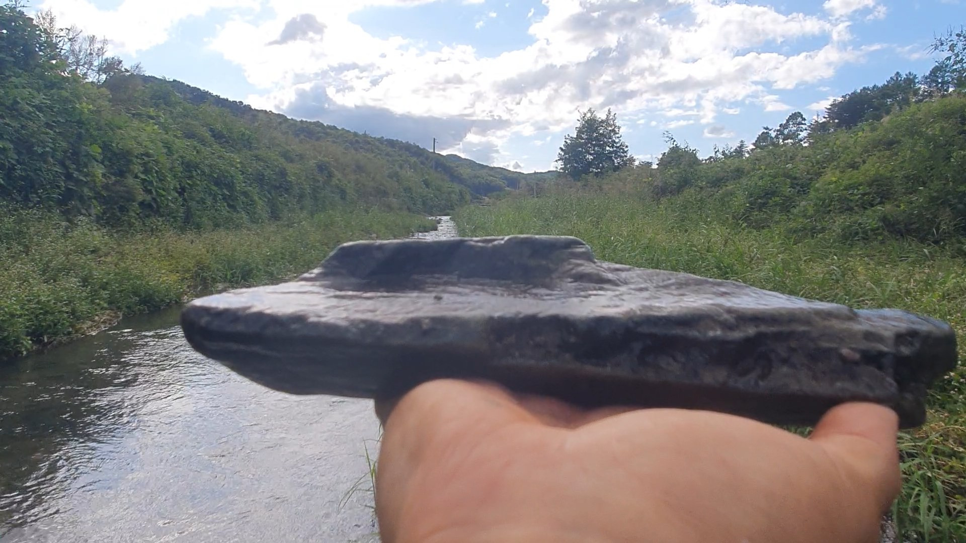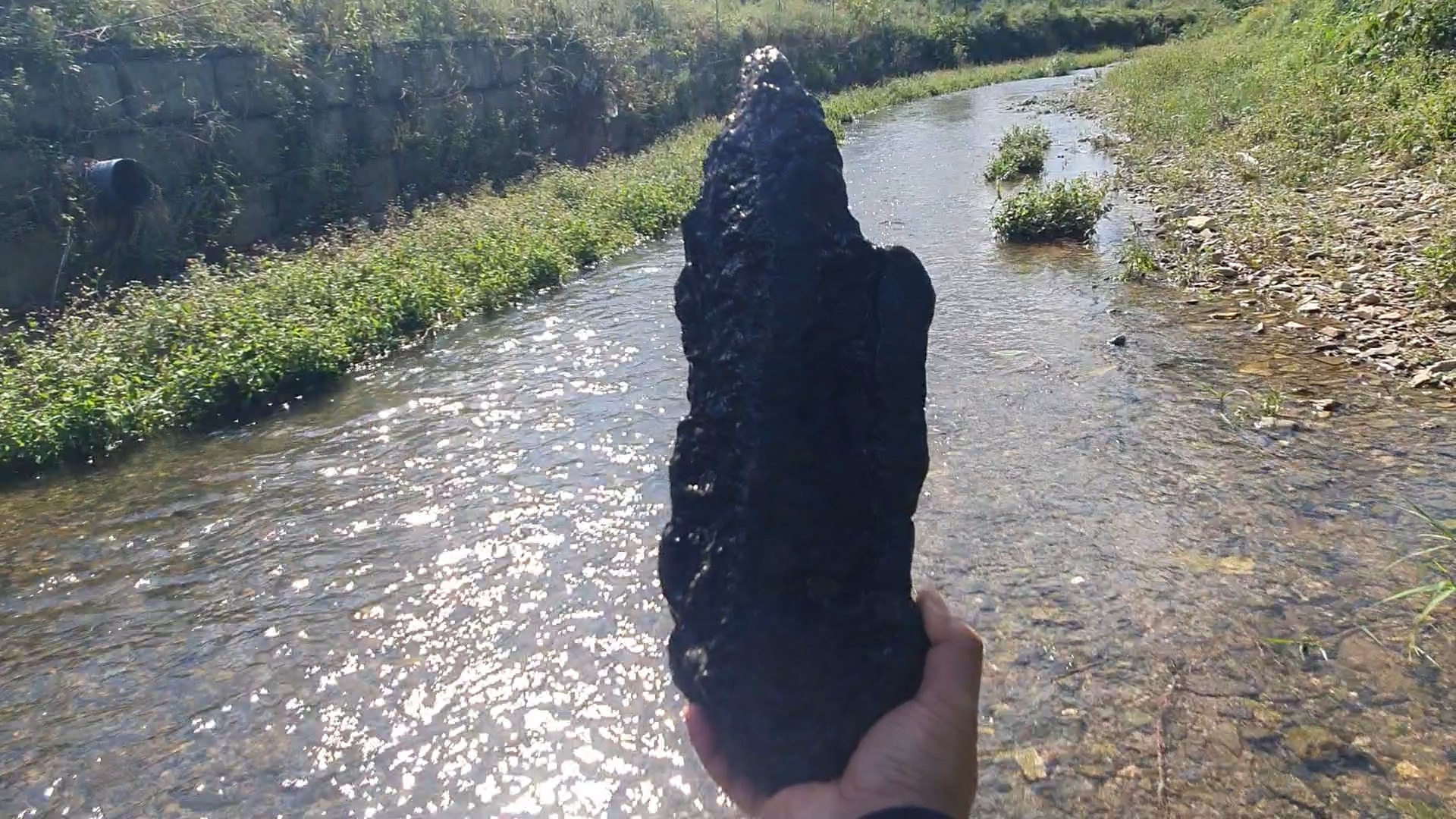 보 가까운곳 큰 돌 밑에서 돌 두점을 만났