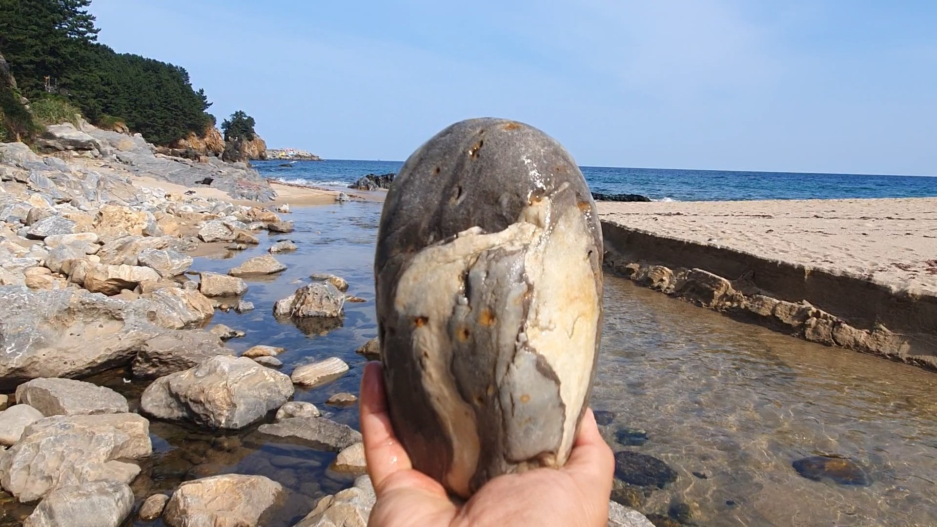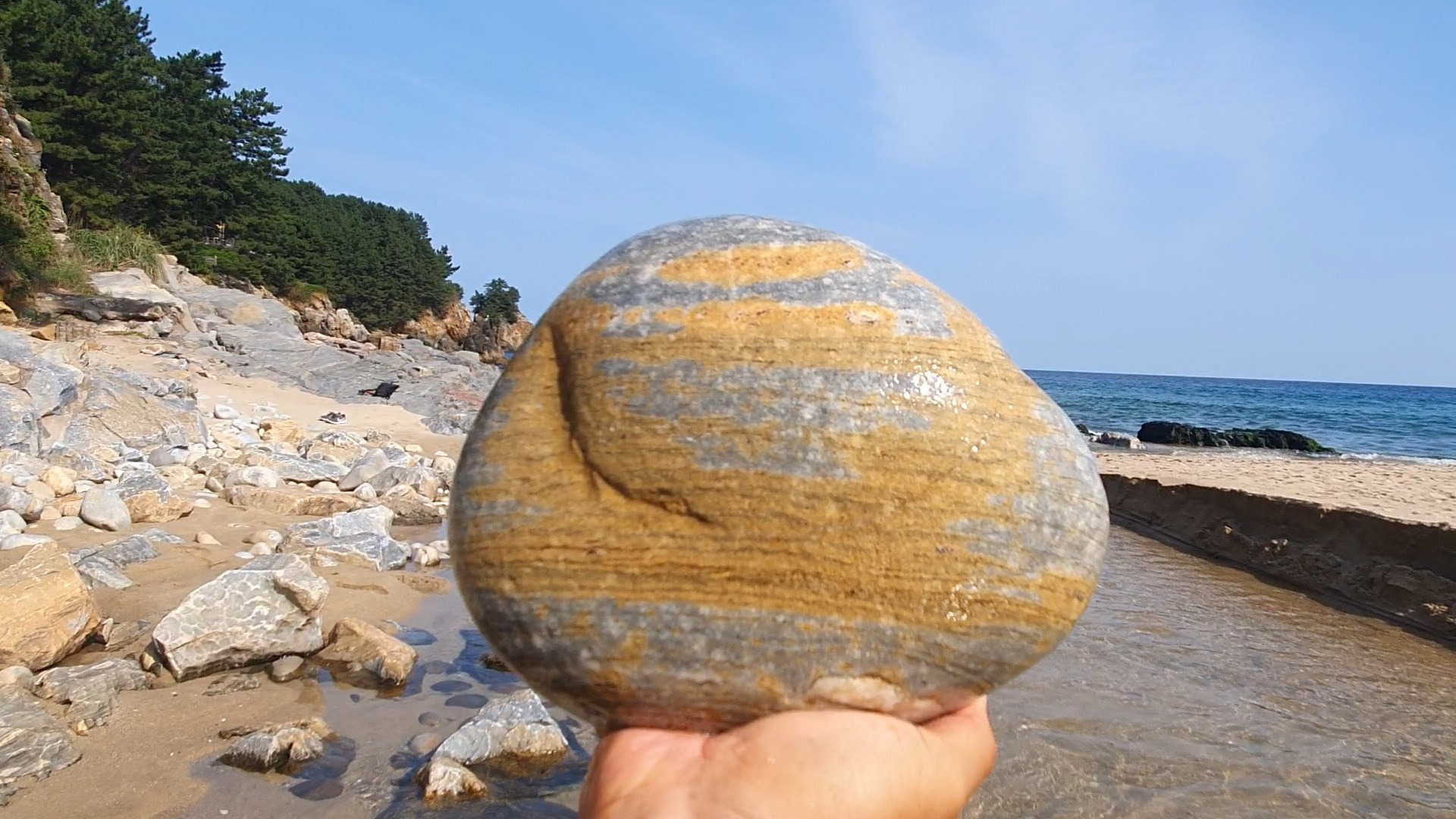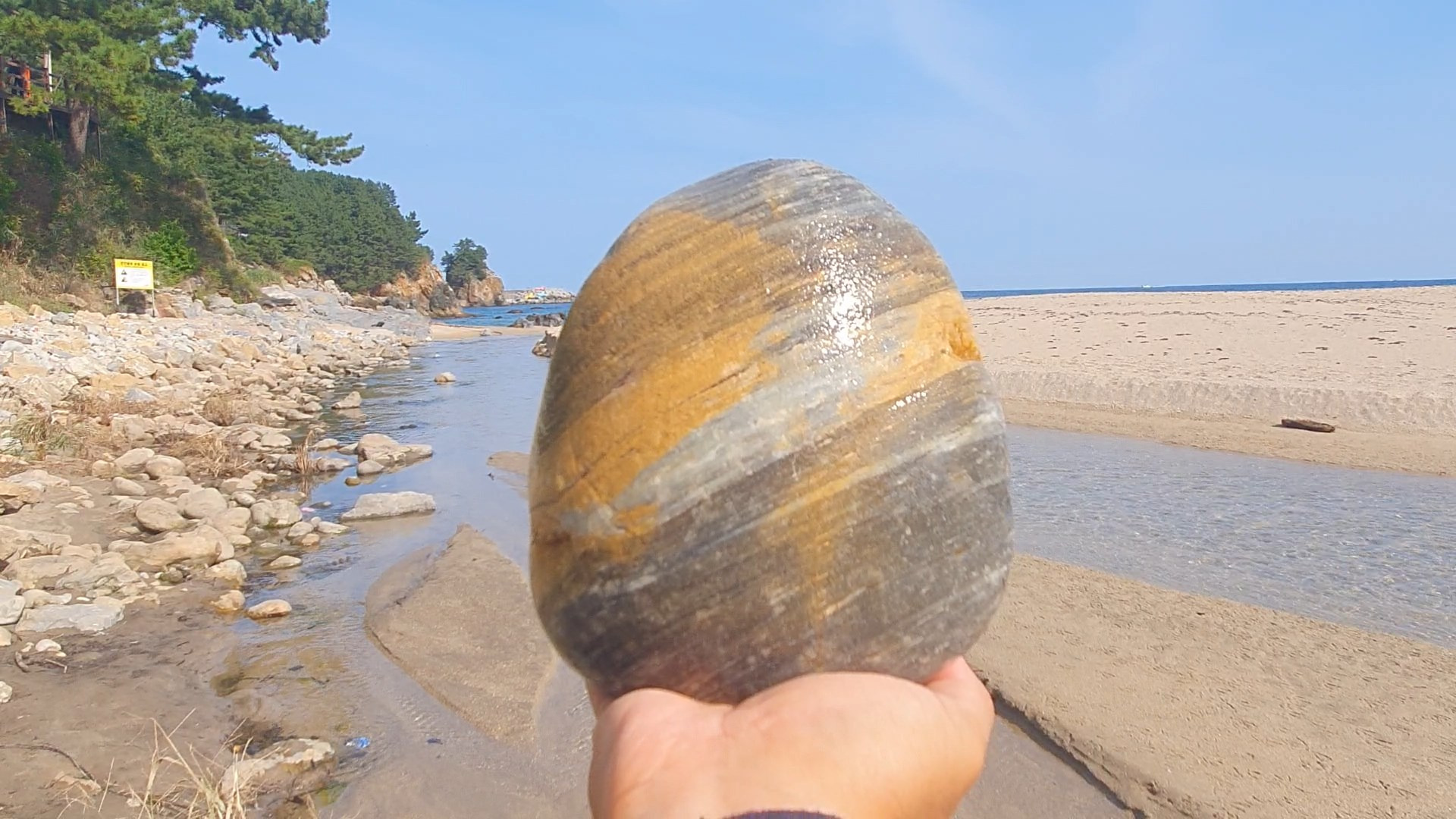 한섬해변의 아름다운 경치와 탐석지