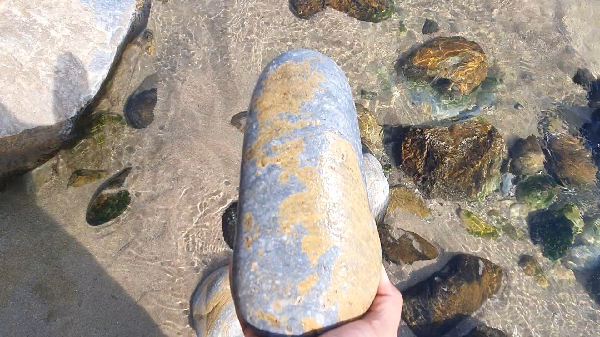 걸려 한소리 듣고 가방에 있던 돌